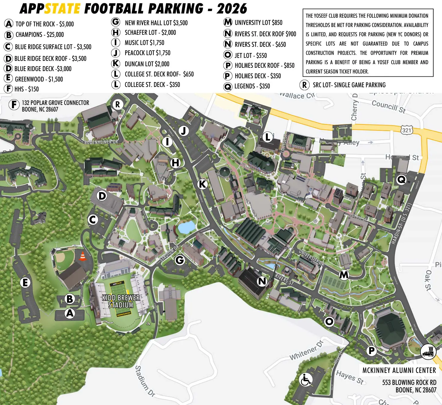 As we enter into a new stage of App State Athletics, we would like to inform and educate all Yosef Club members on changes that will be made to our parking lot minimums and our football season ticket structure. Moving forward into this new stage will require us to stand firm on our core values of Academic Integrity, Competitive Excellence, Social Responsibility, and providing a World-Class Experience for our student-athletes and fans.